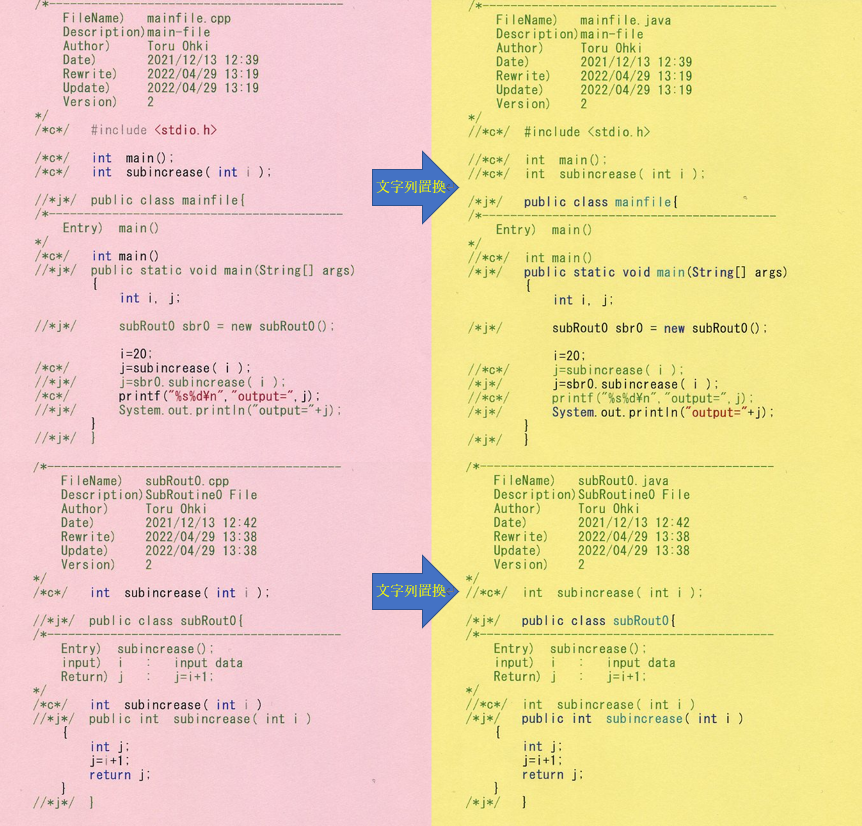 - 上記2つの文字列置換にて「c++」から「JAVA」のファイルを生成する。
