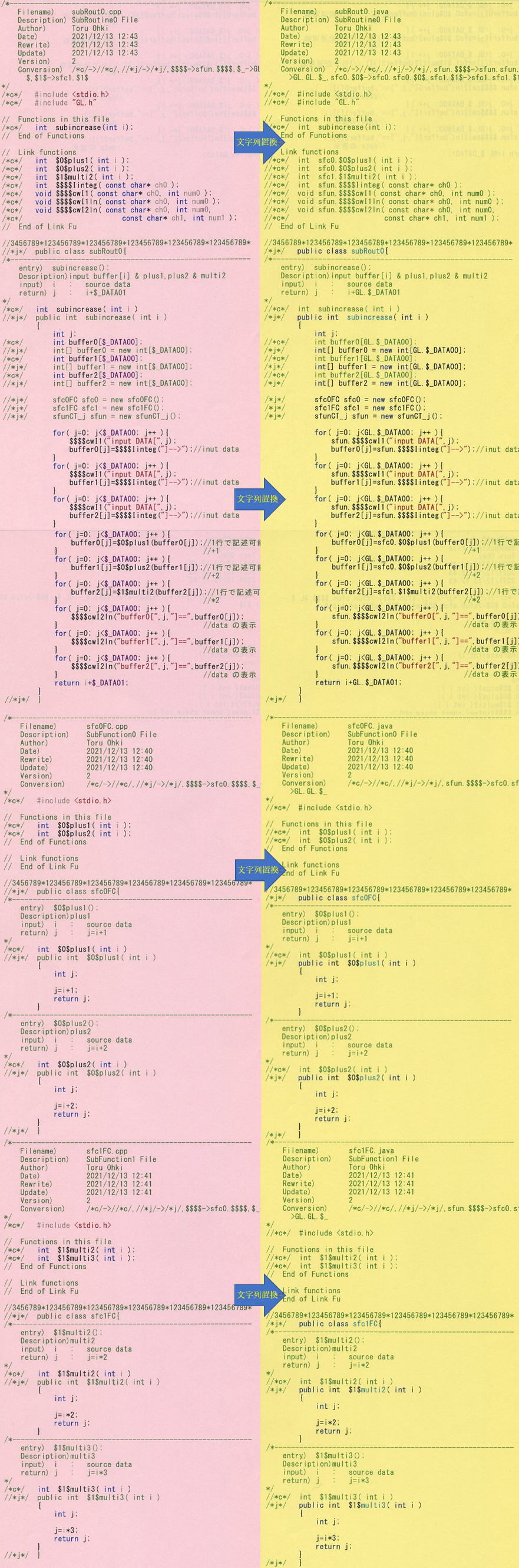 - 「$0$」-->「sfc0.$0$」、「$1$」-->「sfc0.$1$」、「$2$」-->「sfc0.$2$」に文字列置換をする。(この文字列置換については、sfc0FC.cpp及びsfc1FC.cppのファイルには行わない。)